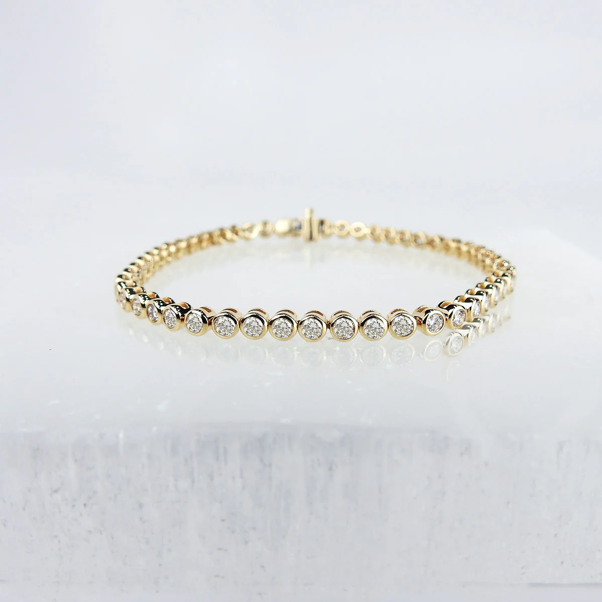 The lab-grown diamonds set in this bracelet are graded in the G-H color and SI+ clarity ranges.